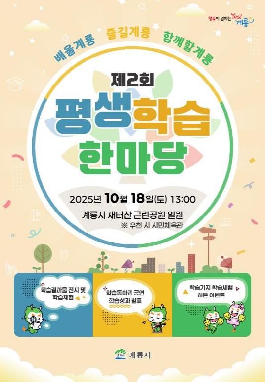 (중부시사신문) 계룡시는 오는 18일 오후 1시부터 시청 앞 새터산 근린공원에서 시민이 주도하는 배움의 축제 “2025 제2회 계룡시 평생학습 한마당”을 개최한다고 밝혔다.