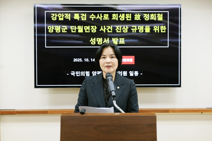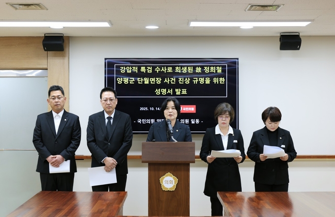 양평군의회 국민의힘 의원 일동은 지난 14일, 강압적인 특검 수사 중에 희생된 故 정희철 양평군 단월면장 사건 진상 규명을 위한 성명서를 발표했다.