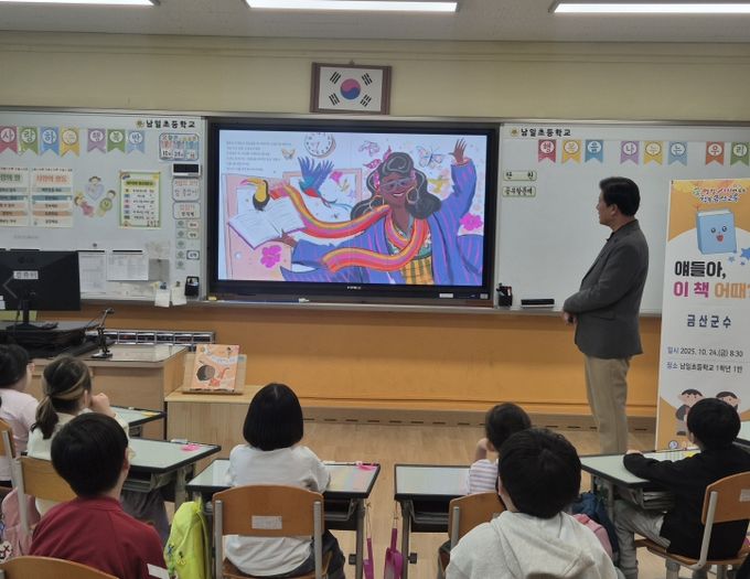 (중부시사신문) 박범인 금산군수는 지난 24일 남일초를 방문해 학생들과 함께 그림책 읽는 시간을 가졌다.