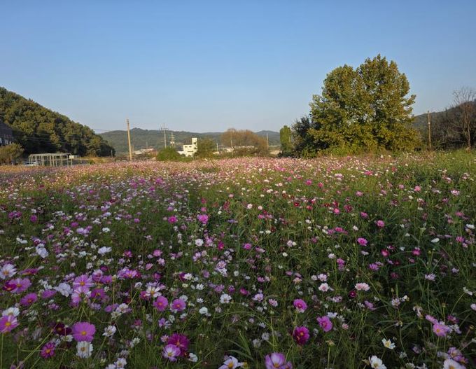 국곡리 주민들이 자발적으로 힘을 모아 가꾼 코스모스 정원은 마을을 따라 흐르는 용수천변(금남면 국곡길 116-11) 일원에 약 1만㎡ 규모로 조성됐다.