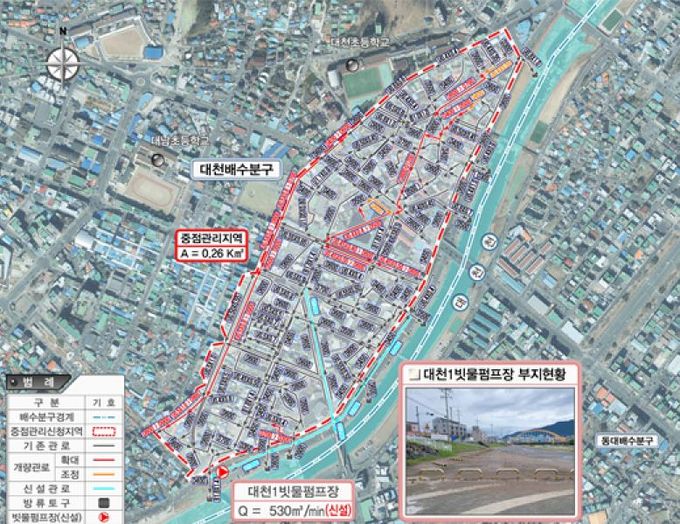 보령시는 2026년부터 약 236억 원을 순차적으로 투입해 대천처리분구 0.26㎢ 내 ▲우수관로 교체 L=1,771m ▲우수관로 신설 L=864m ▲빗물펌프장 1개소 설치 등을 추진할 계획이다. 이를 통해 집중호우 시 신속한 빗물 배출이 가능해질 전망이다.