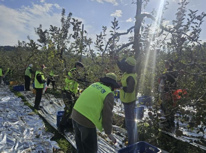 이번 일손돕기에는 김윤환 건축과장을 비롯한 직원 11명이 참여해 사과 따기 작업을 지원했으며, 고령화와 인건비 부담 등으로 어려움을 겪는 농가에 실질적인 도움을 주기 위해 추진됐다.