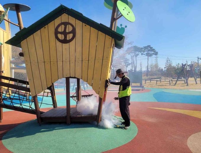 또, 지난 10일 이슬공원 내 모래 놀이터 및 놀이시설에서 추진된 스팀 소독 작업을 통해 위생적인 놀이환경을 만들었다.