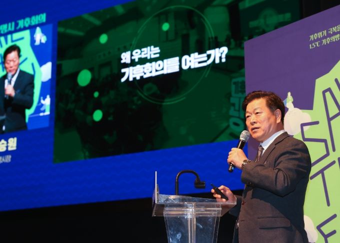 박승원 광명시장은 회의 발제자로 나서 ‘정책에서 실천으로, 시민과 함께 걷는 탄소중립도시 광명’을 주제로 광명시 기후 정책을 소개하고 향후 계획을 설명했다.