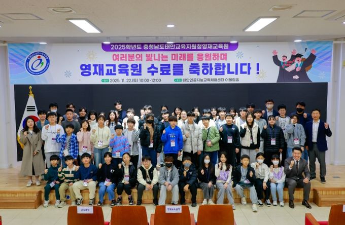 (중부시사신문) 충청남도태안교육지원청은 11월 22일 태안인공지능교육체험센터에서 2025학년도 영재교육과정 활동 및 산출물 발표와 함께 초등 28명, 중등 20명 총 48명의 수료식을 진행했다.
