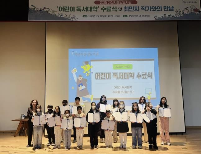 (중부시사신문) 아산시 중앙도서관은 22일 ‘2025년 제9회 어린이 독서대학 수료식’을 개최했다고 밝혔다.