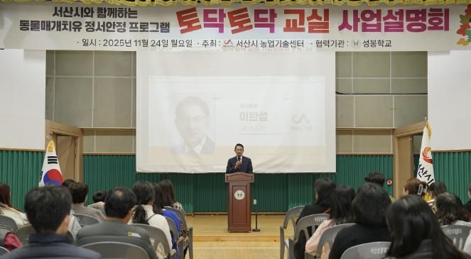 시는 지난 24일 서산성봉학교 강당에서 학부모와 교직원 60여 명을 대상으로 동물매개치료 강의 설명회를 개최했다.