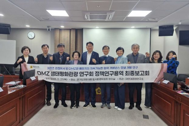 (중부시사신문) 경기도의회 의원연구단체인 DMZ생태평화관광 연구회(회장 오준환 의원)는 지난 27일 경기도의회 도시환경위원회 회의실에서 '커먼즈 관점에서 본 DMZ와 배후지의 지속가능한 협력 거버넌스 모델 개발 연구' 용역 최종보고회를 개최했다.