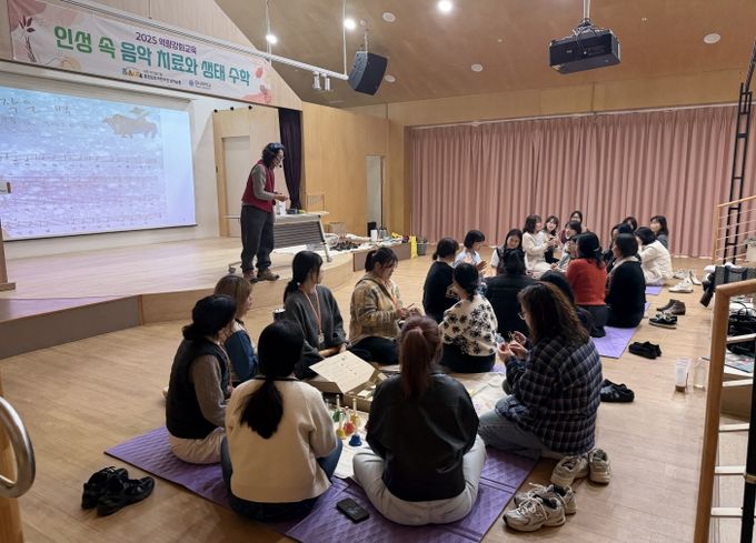 (중부시사신문) 충청남도어린이인성학습원(원장 한유미)은 도내 영유아교직원을 대상으로 11월 27일 ‘인성 속 음악치료와 생태 수학’을 주제로 역량강화교육을 진행했다. 이번 교육은 한국 숲 인성 교육 개발원 김미란 강사가 참여해 일상 속 놀이를 통한 인성교육 방법을 전달하며 의미 있게 구성됐다.