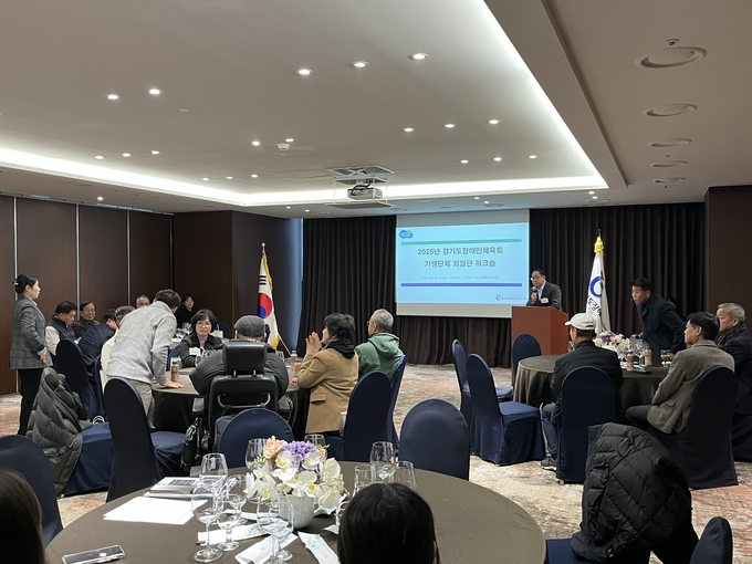 경기도장애인체육회(회장: 김동연 경기도지사)는 12월 16일(화)부터 17일(수)까지 이비스 앰배서더 수원에서 “2025년 경기도장애인체육회 가맹단체 회장단 워크숍”을 성공적으로 개최했다. 이번 워크숍에는 도내 39개 가맹단체 중 23개 단체의 회장단이 참석해 사업운영을 점검하고, 개선방향을 모색하는 뜻깊은 시간을 가졌다.