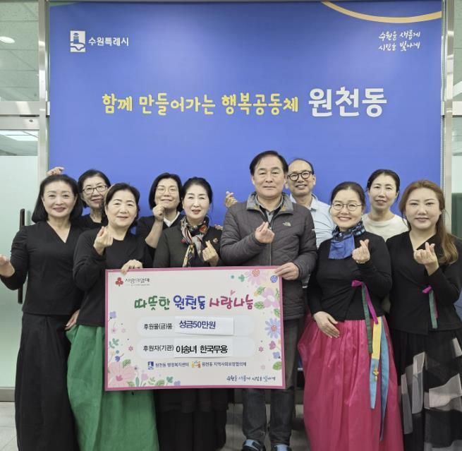 김선혁 동장은 “매년 잊지 않고 따뜻한 마음을 전해주시는 한국무용반 강사와 수강생들께 감사드린다”며 “전달받은 성금은 도움이 필요한 저소득 주민들에게 소중히 사용하겠다”고 말했다.
