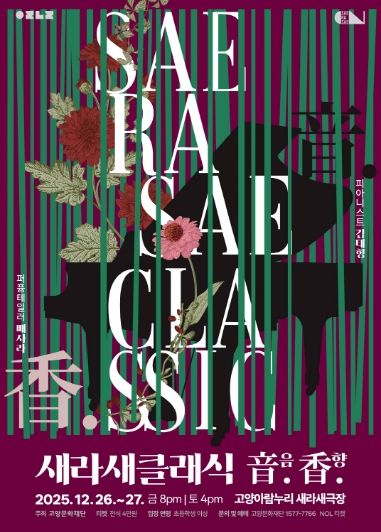 (중부시사신문) 고양문화재단은 오는 12월 26일~27일 양일간 크리스마스 시즌을 맞아 음악과 향기를 결합한 공감각 클래식 공연 새라새 클래식 '音음. 香향'을 선보인다. 이번 공연은 피아노 연주와 향(香)이 함께 어우러지는 형식으로 관객에게 클래식 음악을 보다 새로운 방식으로 경험할 수 있는 시간을 제안한다.