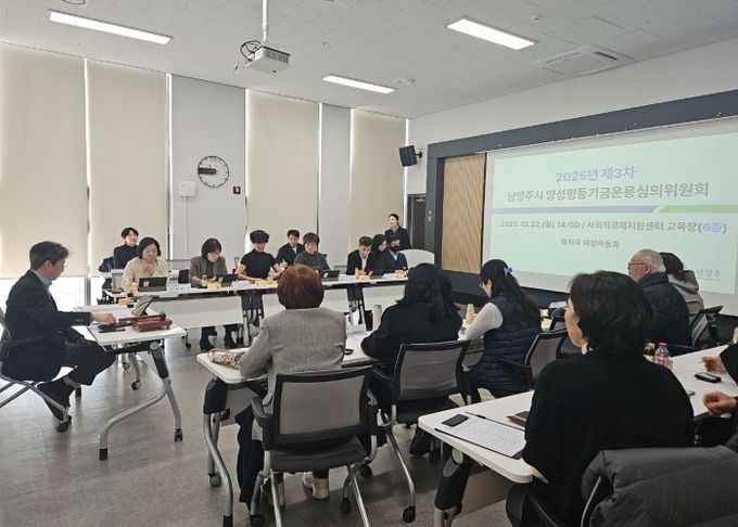(중부시사신문) 남양주시는 22일 남양주사회적경제지원센터에서 ‘2025년 제3차 남양주시 양성평등기금운용심의위원회 및 성과공유회’를 개최하고, 올해 추진한 양성평등기금 지원사업의 성과를 공유하며 2026년도 사업방향을 논의했다고 밝혔다.