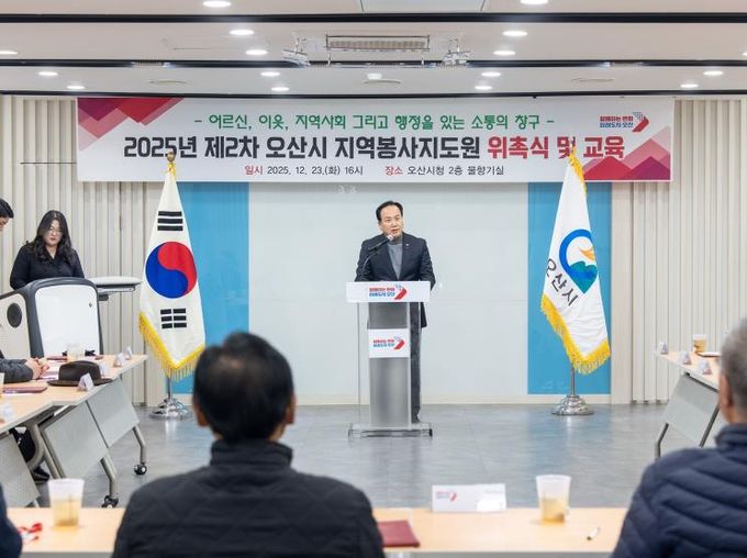 (중부시사신문) 오산시는 지난 23일 오산시청 물향기실에서 신규 경로당 회장을 대상으로 한 '2025년 지역봉사지도원 위촉식'을 개최했다고 밝혔다.