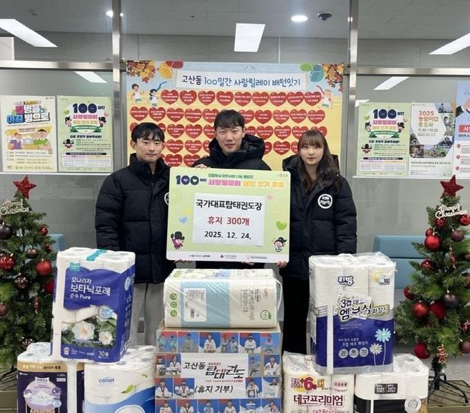 (중부시사신문) 의정부시 고산동주민센터는 12월 24일 고산동 소재 국가대표 탑 태권도장이 지역 저소득층을 위해 두루마리 화장지 300개를 기부했다고 밝혔다.