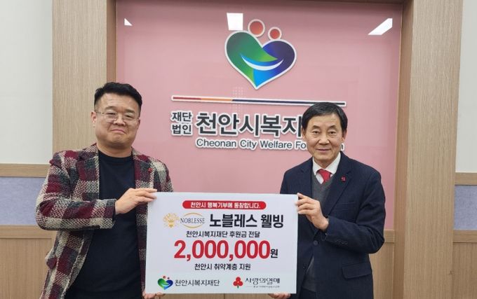 (중부시사신문) (재)천안시복지재단은 지난 30일 노블레스 웰빙이 취약계층을 위한 후원금 200만 원을 기탁했다고 밝혔다.