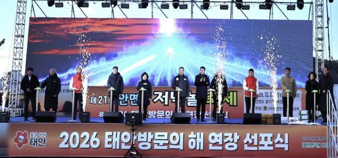 이번 선포식은 지난해 성공적으로 운영된 태안 방문의 해의 연장을 알리고 관광객 유치를 위한 군의 의지를 전달하기 위한 것으로, 연말을 맞아 서해 3대 해넘이 명소로 손꼽히는 꽃지 해수욕장에서 개최돼 그 의미를 더했다.