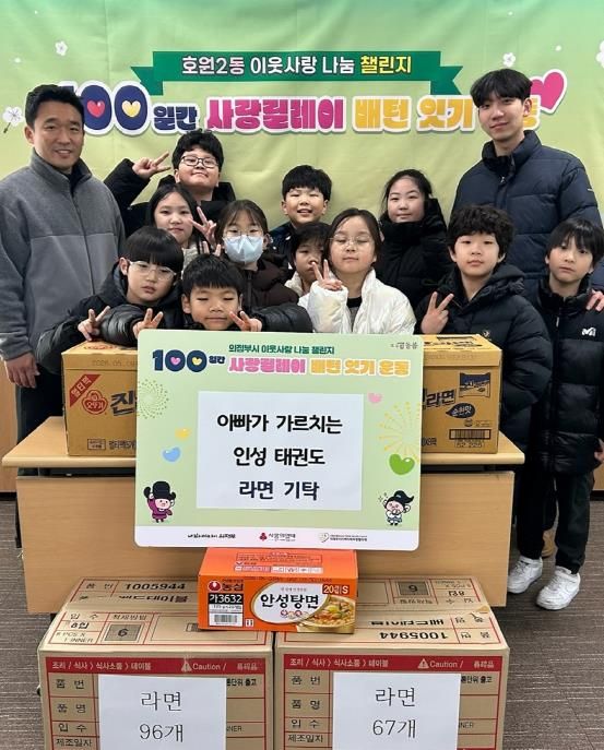 (중부시사신문) 의정부시 호원2동주민센터는 12월 31일 아빠가 가르치는 인성태권도 수련생들이 정성을 모아 취약계층을 돕기 위한 라면 310개를 기탁했다고 전했다.