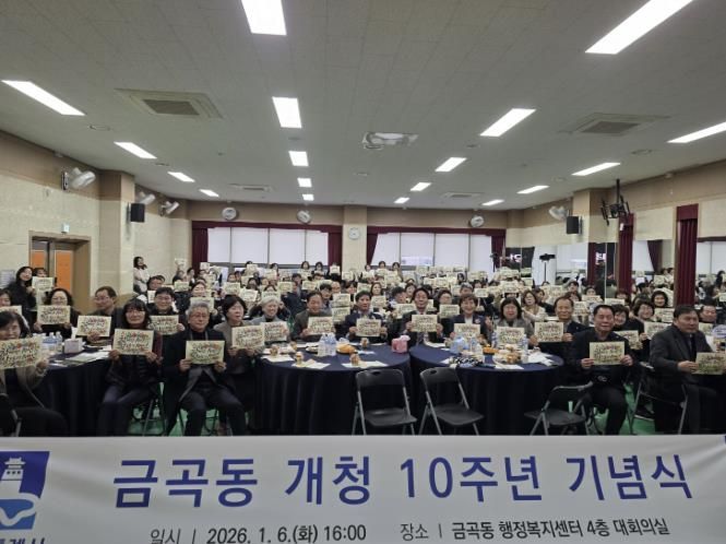 (중부시사신문) 2026년 개청 10주년을 맞은 권선구 금곡동은 지난 6일 지역구 의원과 주민 등 100여 명이 참석한 가운데 주민자치회 및 통장협의회와 함께 10주년 기념행사를 개최했다.