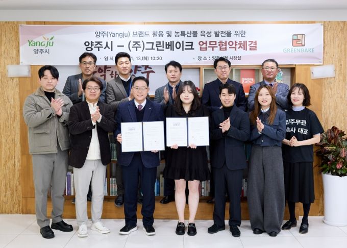 (중부시사신문) 양주시는 13일 오전 ㈜그린베이크와 ‘양주(Yangju) 브랜드 활용 및 농특산물 육성 발전을 위한 업무협약(MOU)’을 체결했다고 밝혔다.