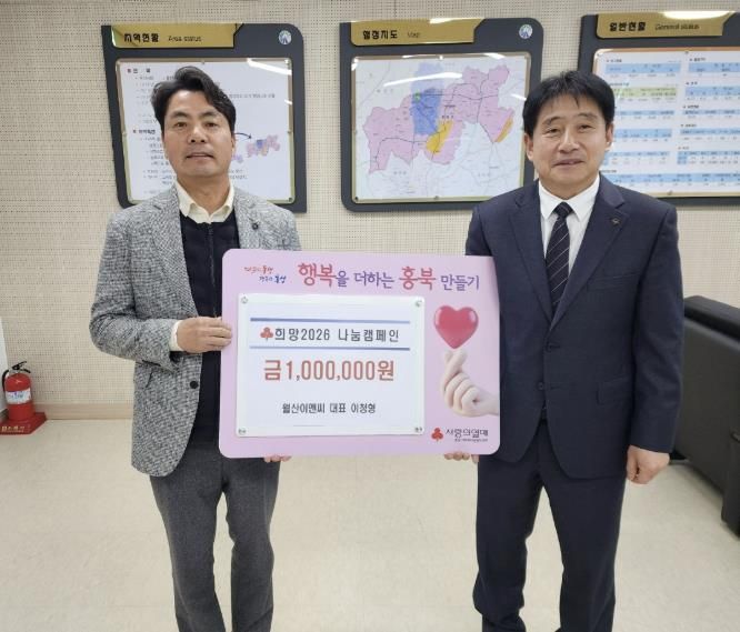 (중부시사신문) 홍성군은 ㈜월산이앤씨가 지난 13일, 지역사회 이웃돕기 실천의 일환으로 희망2026 나눔캠페인에 성금 100만 원을 기탁했다고 밝혔다.