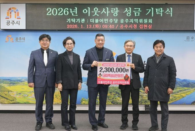 (중부시사신문) 공주시는 지난 13일 시청 집현실에서 더불어민주당 공주지역위원회가 지역의 어려운 이웃을 돕기 위해 성금 230만원을 기탁했다고 밝혔다.