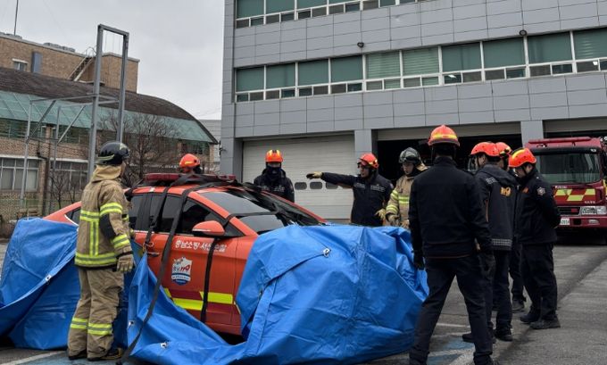 이번 훈련은 연료가 기름에서 리튬이온 배터리로 전환된 전기차 화재의 특성에 맞춰, 기존 차량 화재와 다른 대응 전략을 숙달하는 데 중점을 두고 진행됐다.