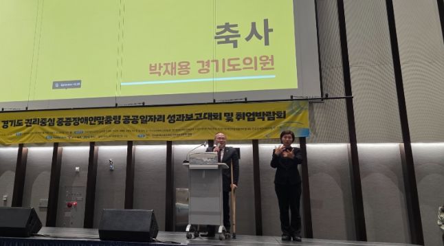 (중부시사신문) 경기도의회 보건복지위원회 박재용 의원(더불어민주당, 비례)은 16일, 수원컨벤션센터에서 열린 ‘2025년 경기도 권리중심 중증장애인맞춤형 공공일자리 성과보고대회 및 취업박람회’에 참석해 축사를 전하고, 중증장애인의 노동권 보장과 권리중심 공공일자리 정책의 지속적인 발전 필요성을 강조했다.