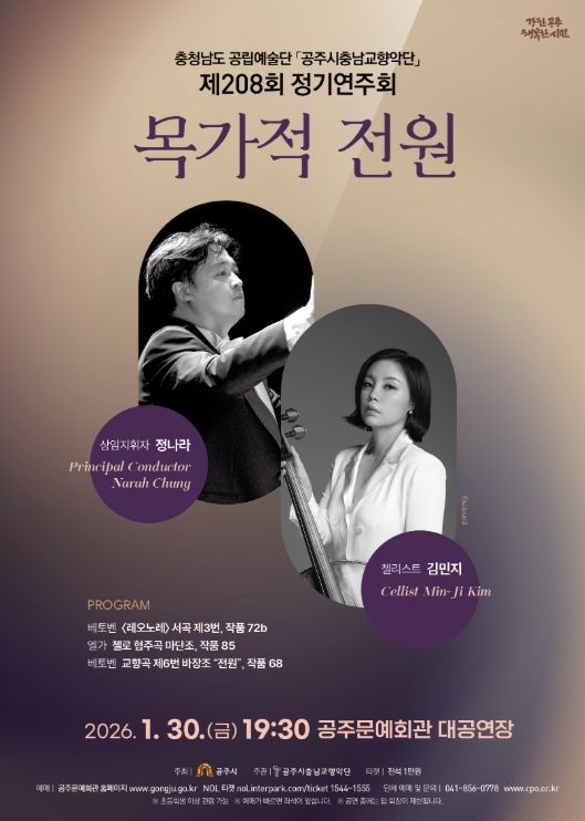 (중부시사신문) 충청남도 공립예술단 공주시충남교향악단은 오는 1월 30일19시 30분, 공주문예회관 대공연장에서 ‘목가적 전원’을 부제로 2026년 시즌의 첫 정기공연의 문을 연다.