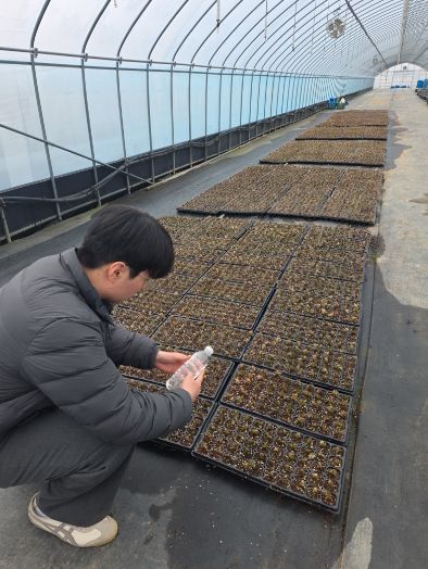 (중부시사신문) 금산군농업기술센터는 올해 금산천 데크길 꽃잔디 식재를 위한 우수 육묘 생산에 총력 대응하고 있다.