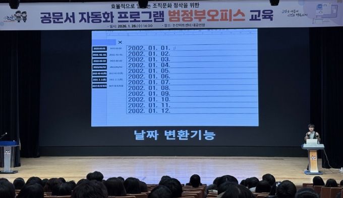 (중부시사신문) 논산시는 지난 28일 논산아트센터 대공연장에서 저연차 공무원을 대상으로 공문서 자동화 프로그램‘범정부오피스(범피스)’교육을 실시했다.
