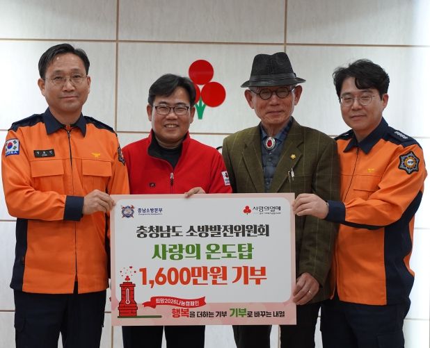 (중부시사신문) 충청남도 소방발전위원회(소방정책 자문·협의기구)는 지난 30일 연말연시 이웃돕기 성금 모금인 ‘사랑의 온도탑’에 성금 1600만 원을 기탁했다고 1일 밝혔다.