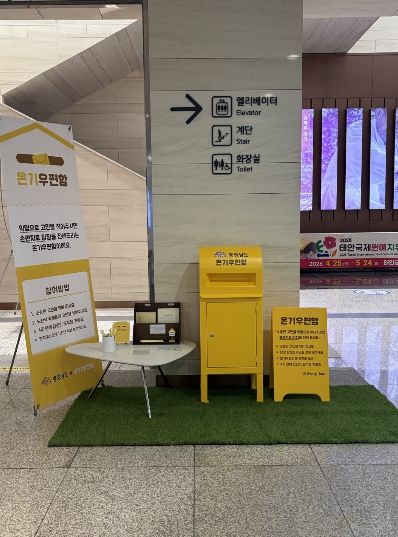 도청 본관 지하1층 로비에 설치된 제1호 온기우편함은 오는 3월 말까지 운영하며, 3월부터는 도내 32개 대학교로 확대 운영할 계획이다.