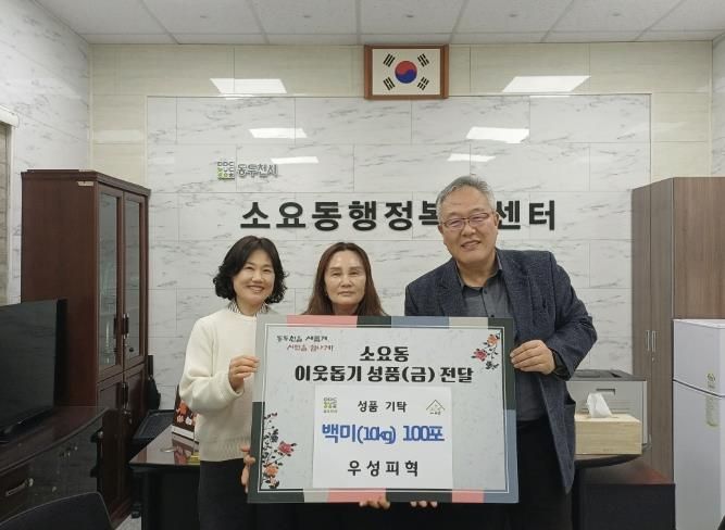김승호 소요동장은 “어려운 이웃을 위해 한결같이 따뜻한 나눔을 실천해 주신 우성피혁 정소현 대표님께 깊이 감사드린다”라고 말했다.