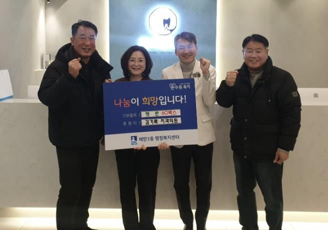 김기록치과는 주변의 어려운 이웃을 돕기 위한 나눔에 동참하며 지역사회 복지 증진에 힘을 보탰다. 기탁된 햇반은 관내 기초생활수급자와 홑몸 어르신 등 식사 지원이 필요한 취약계층뿐만 아니라 복지 사각지대 가구에 전달될 예정이다.