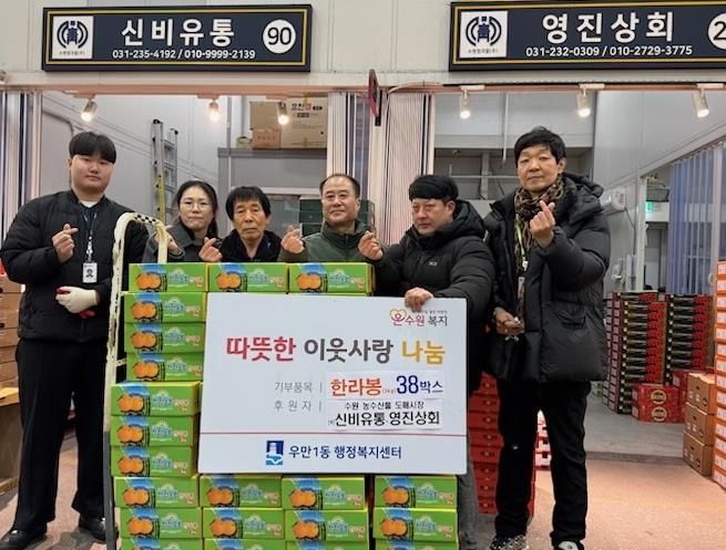(중부시사신문) 수원 농수산물도매시장 내 신비유통‧영진상회에서 설 명절을 앞두고 우만동 이웃들에게 따뜻한 정을 전했다고 밝혔다.