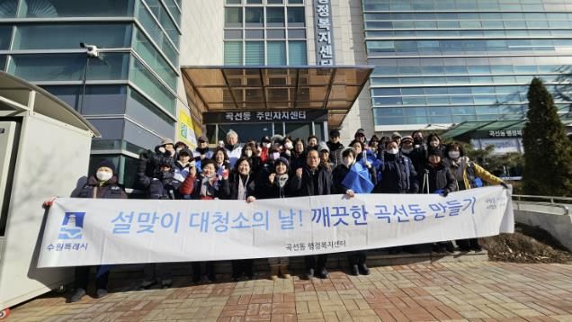 (중부시사신문) 권선구 곡선동은 지난 9일 이번 설연휴를 앞두고 동 단체 회원들과 동 직원들이 합동하여 설맞이 대청소를 진행했다.