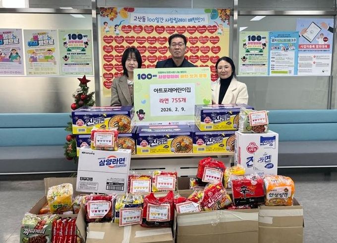 (중부시사신문) 의정부시 고산동주민센터는 2월 9일 아트포레어린이집이 설 명절을 앞두고 소외된 이웃을 위해 라면 755개를 기탁했다고 밝혔다.