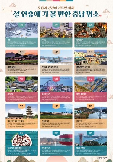 도는 충남을 찾는 방문객의 편의를 위해 설 연휴 기간 개최되는 주요 행사·프로그램 및 관광지·맛집·숙소 운영 현황을 충남관광 누리집을 통해 알리고 있다.
