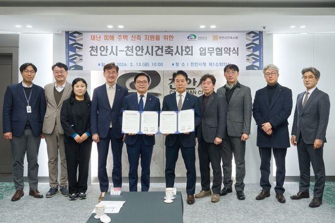 천안시는 13일 천안시 건축사회와 ‘재난 피해 주택 신축 지원을 위한 업무 협약’을 체결했다고 밝혔다.