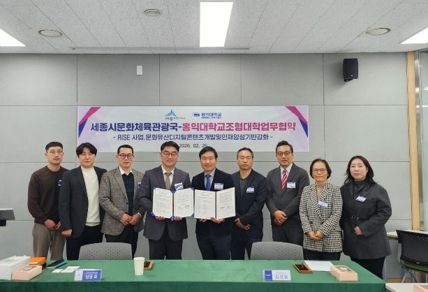 시는 26일 홍익대(세종캠)에서 시 문화체육관광국과 홍익대 조형대학이 라이즈(RISE) 사업을 통한 지역 문화유산의 디지털콘텐츠 개발·구축 업무협약을 체결했다고 밝혔다.