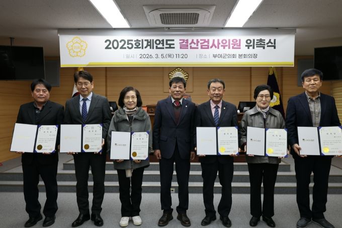 (중부시사신문) 부여군의회는 5일 본회의장에서 제299회 부여군의회 임시회 제1차 본회의를 통해 선임된 2025 회계연도 결산검사위원에 대한 위촉장 수여식을 가졌다고 밝혔다.