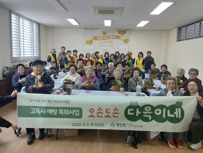 (중부시사신문) 영인면행복키움추진단은 지난 5일 고독사 예방을 위해 독거어르신 80여 명을 대상으로 '반려식물(다육이) 꾸미기 및 나눔 프로그램'을 진행했다.
