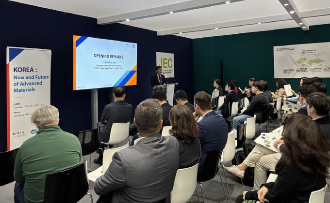 대표단은 10일 박람회 전시장 내 VIP 이벤트룸에서 첨단소재 분야 기업 관계자가 참석한 가운데 ‘경기경제자유구역(GGFEZ) 투자설명회’를 개최했다. 경기경제자유구역청은 설명회에서 산업 인프라와 입지 경쟁력, 첨단소재·반도체·수소 산업과 연계한 성장 전략을 소개했다. 코트라는 한국 첨단소재 정책방향과 투자유치 사례를 공유했으며, 한국탄소나노협회는 국내 탄소나노사업의 현황과 전망을 설명했고, ㈜한화첨단소재는 자사의 첨단소재 개발 현황 및 미래 전략을 제시했다. 이를 통해 참석자들은 한국의 첨단소재 산업 생태계와 매력적인 투자 환경을 한눈에 파악할 수 있었다.