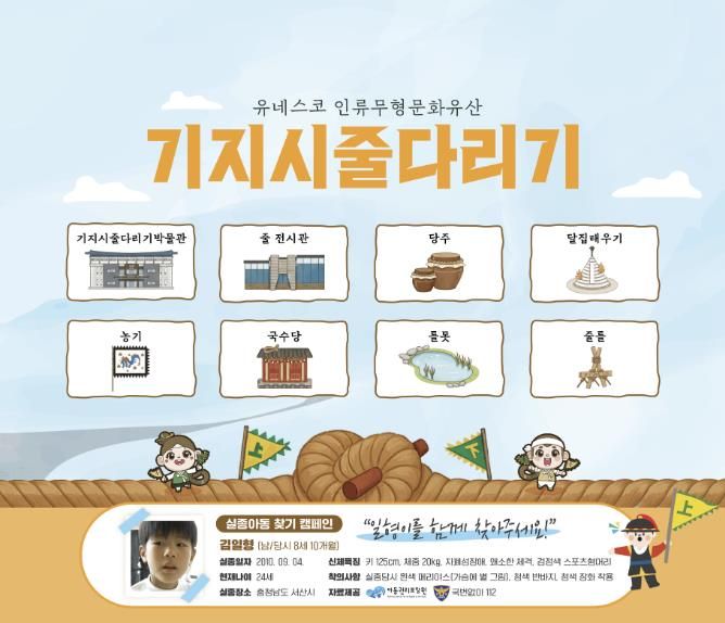 시는 해당 홍보물을 당진 문화유산의 전국 홍보를 위해 제작한 만큼 자연스럽게 실종아동 정보를 확산해 아동들을 찾는 데 크게 도움이 될 것으로 기대하고 있다.