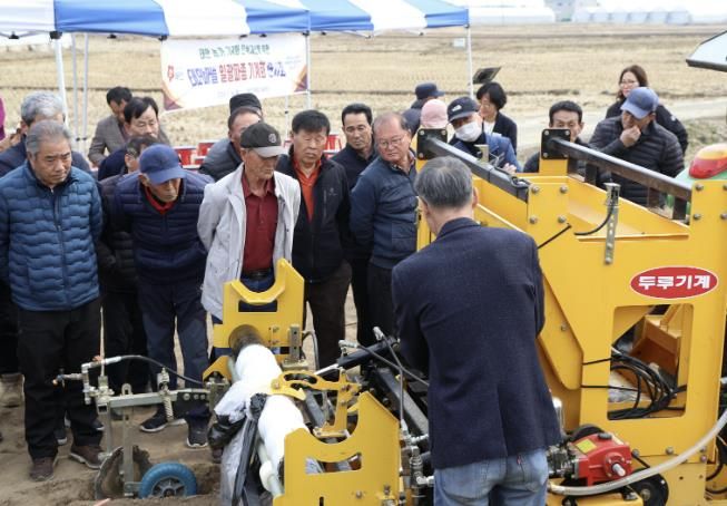 군은 지난 16일 태안읍 상옥리 소재 농가에서 관내 마늘 재배 농업인과 군 관계자 등 100여 명이 참석한 가운데 ‘태안마늘 일괄 파종 기계화 연시회’를 개최하고, 기계 작동 원리와 운용 방법 설명 및 현장 시연을 통해 참석자들의 이해를 도왔다.