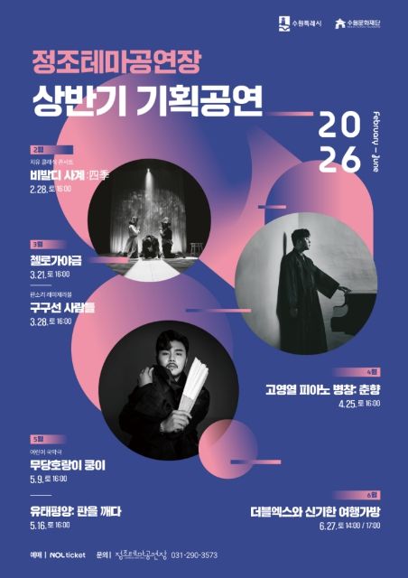 (중부시사신문) 수원문화재단은 오는 4월부터 6월까지 정조테마공연장에서 전통예술의 현대적 확장을 주제로 한 기획공연 4편을 선보인다.