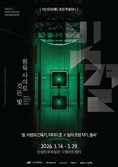 (중부시사신문) (재)아산문화재단이 구정아트센터에서 개최 중인 2026 우수전시 초청 《침묵 사이로 깃든 빛》이 공간과 예술이 조화를 이룬 전시로 주목받고 있다.