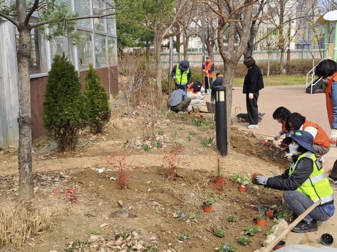 이번 행사는 주민자치회 ‘반딧불마을분과’에서 주관하고 금정동 경기행복마을관리소와 통장협의회가 힘을 보태 공원 내 유휴 부지에 다양한 초화류와 관목을 심어 아름다운 마을 정원을 조성하기 위해 마련됐다.