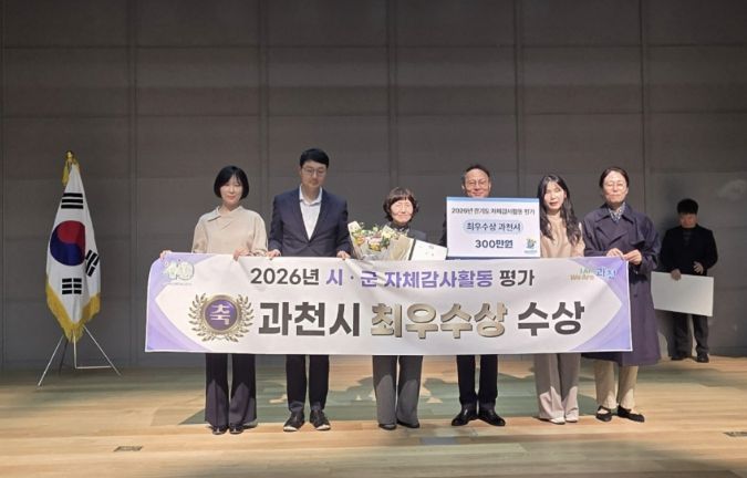 (중부시사신문) 과천시는 경기도 감사위원회가 실시한 ‘2026년 시군 자체감사활동 평가’에서 우수기관으로 선정돼 31일 열린 ‘2026년 도-시군 감사협의체 평가’에서 최우수상을 수상했다.